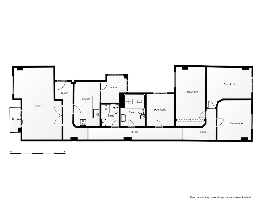 | Dispone | 4 habitaciones | 2 baños |