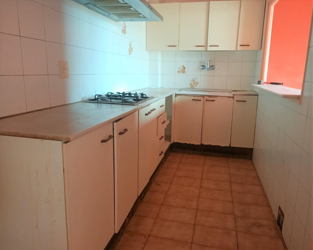 Piso con una superficie construida de 59 m2 distribuidos en comedor con salida a pequeño balcón, cocina independiente, 1 habitación doble y 1 individual; más 1 baño completo con bañera.