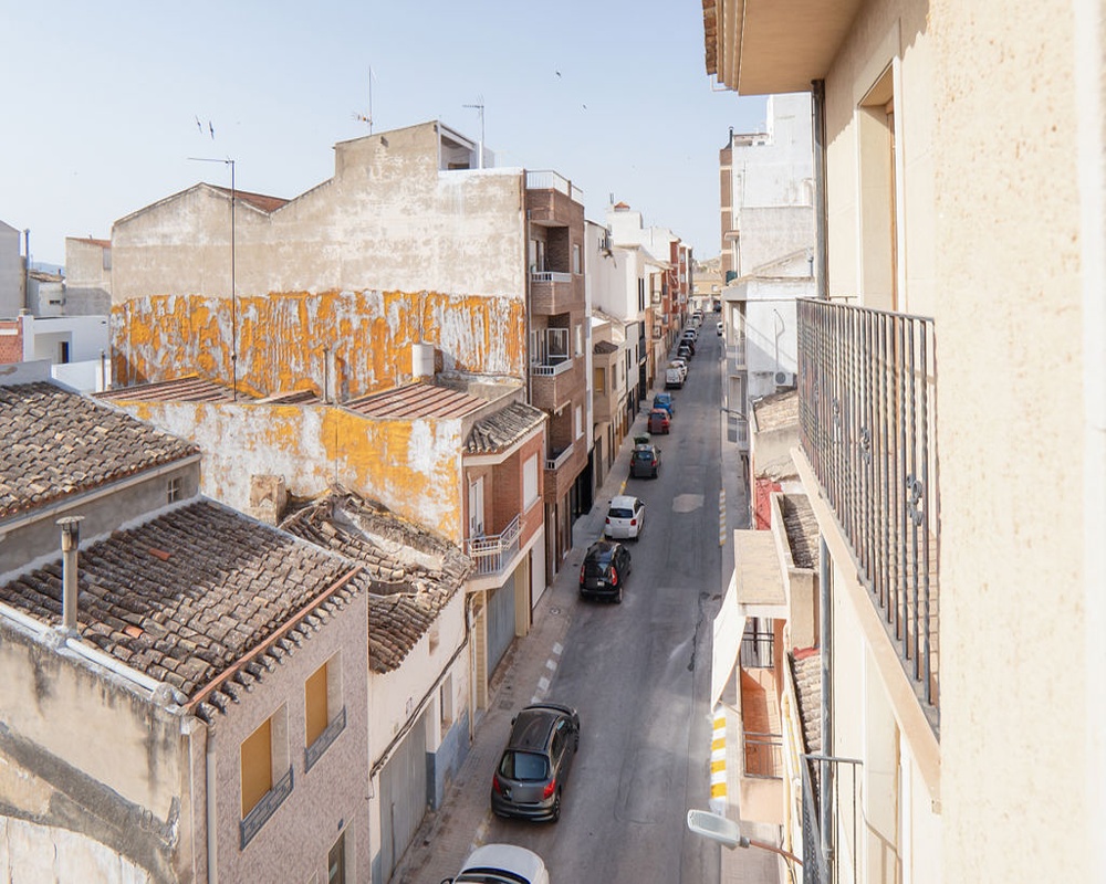 Piso de cuatro dormitorios y dos cuartos de baño. Se encuentra en la tercera planta de un edificio de tres alturas sobre rasante, situado en la calle Concepción, del municipio de Yecla, provincia de Murcia.