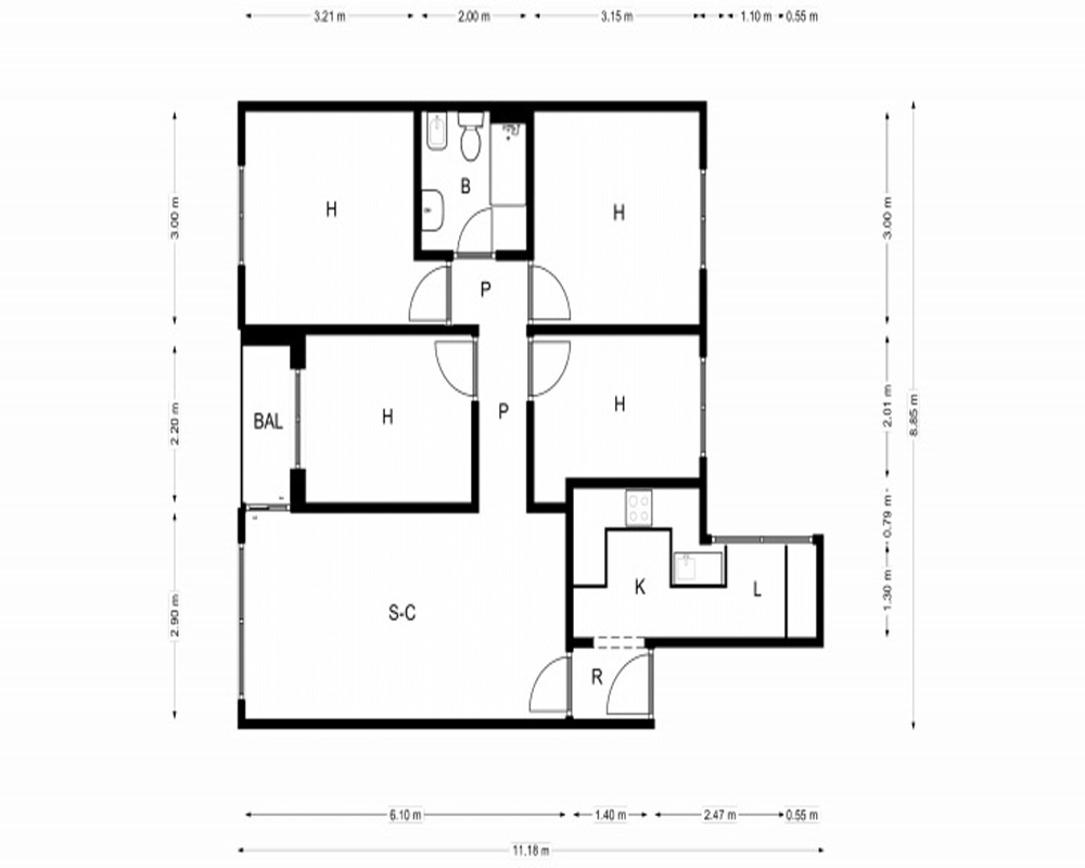 | Dispone | 4 habitaciones | 1 baño |