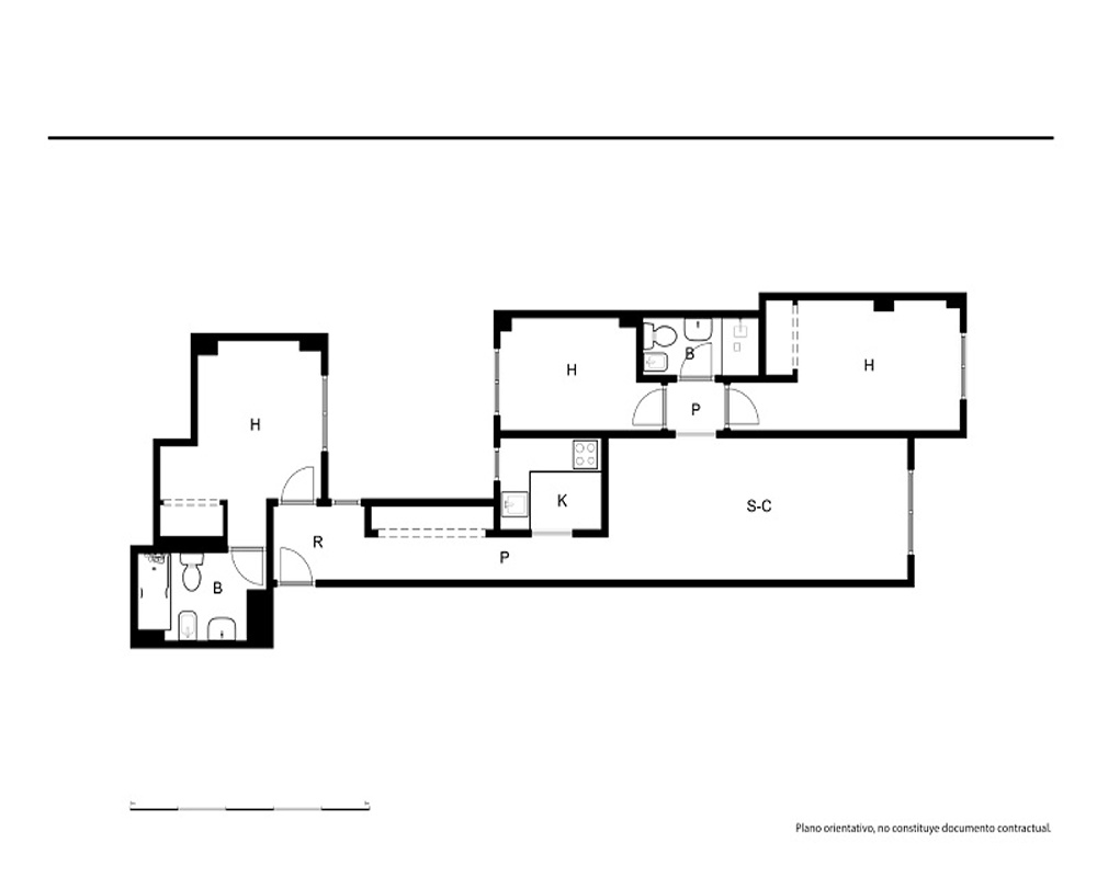 | Dispone | 3 habitaciones | 2 baños |