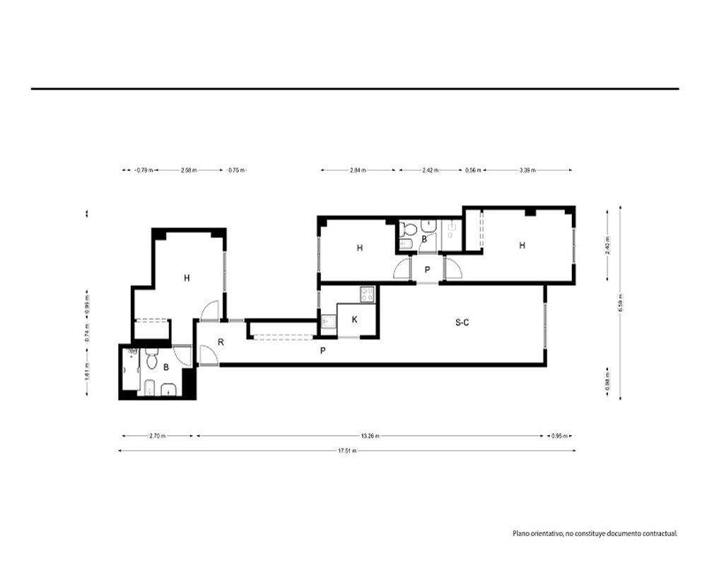 Piso 51 m², 2 hab