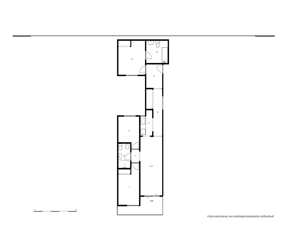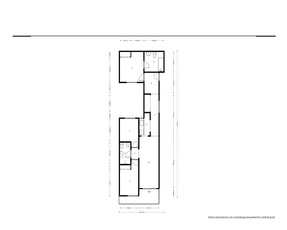 | Dispone | 3 habitaciones | 2 baños |
