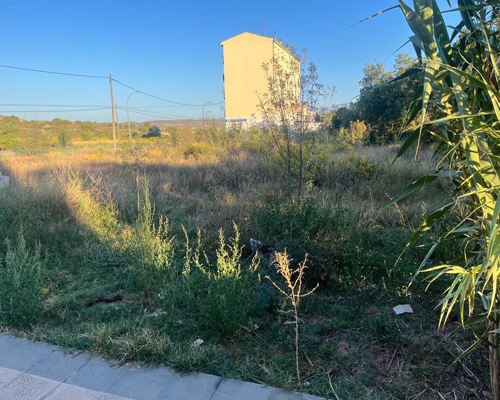Parcela de terreno de forma trapezoidal con su fachada principal en la Avenida de la Estación. La topografía de la parcela es totalmente plana y sobre esta parcela no existe ninguna edificación, únicamente encontramos vegetación.