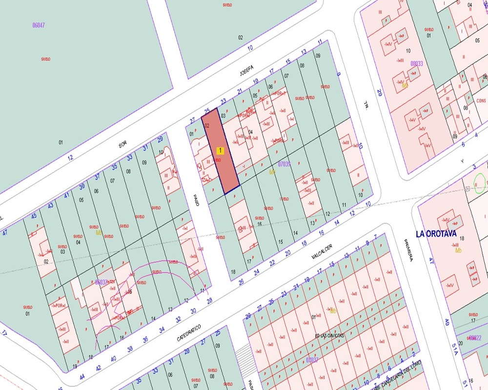 Suelo urbano de 146,39 m² ubicado en La Orotava, Santa Cruz de Tenerife. De acuerdo a la normativa urbanística de aplicación, el terreno se encuentra clasificado como Suelo Urbano consolidado, alcanzando la naturaleza de solar. PLANEAMIENTO URBANÍSTICO: Al solar le es de aplicación la aprobación Definitiva de Modo Parcial de Adaptación Plena al D.L. 1/2000 de Plan General de Ordenación de La Orotava, publicado el 18/06/2004 en el BOC 117/04 y el 29/06/2004 en el BOP 089/04. CALIFICACIÓN URBANÍSTICA Y PARÁMETROS URBANÍSTICOS: En resumen los parámetros que afectan a la parcela para una tipología de Edificación Ciudad Jardín en hilera (CJ1) es; Parcela mínima de 120,00 m2 con un frente de parcela mínimo de 5,00 m, fondo máximo 25 m, separación mínima a lindero frontal de 5 m, posterior 3 m y lateral, no procede para (CJ1), porcentaje máximo de ocupación 75%, edificabilidad máxima sobre rasante 1,40 m2t/m2s para (CJ1), número de plantas permitidas 2 plantas con una altura máxima de 7,40 m. El suelo urbano se sitúa en el Plan Parcial "Candelaria del Lomo", dentro del núcleo urbano de La Orotava, con buenos accesos por la TF-5. Dispone de comunicaciones mediante líneas de autobús interurbano que conectan con otras zonas de la isla. En la zona se pueden encontrar servicios como supermercados, restaurantes, instalaciones deportivas, centros educativos, oficinas bancarias y otros negocios comerciales. Cerca del activo se encuentra el Hospital Universitario Nuestra Señora de Candelaria, así como el centro histórico de La Orotava y el Jardín Botánico. Con nuestros servicios podrá encontrar el suelo urbano que necesita y asegurar su inversión con el mejor de los asesoramientos especializados. Empiece ahora mismo pidiendo más información. Un responsable cercano a usted le atenderá personalmente.