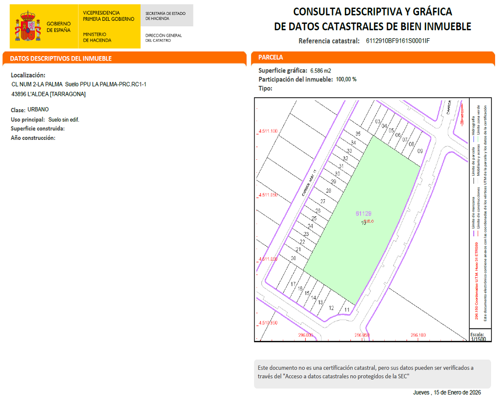 - Referencia catastral: 6112910BF9161S0001IF