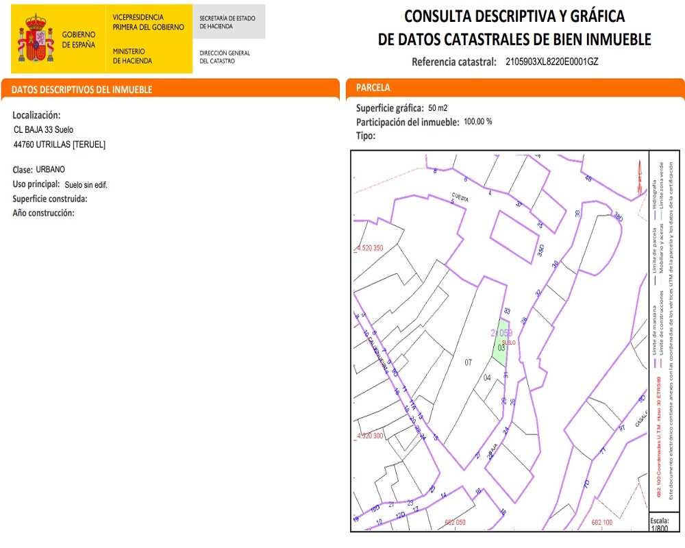 Excelente oportunidad para adquirir en propiedad este suelo urbano residencial ubicado en la localidad de Utrillas, en la provincia de Teruel, una opción estratégica tanto para autopromoción como para desarrollo inmobiliario.